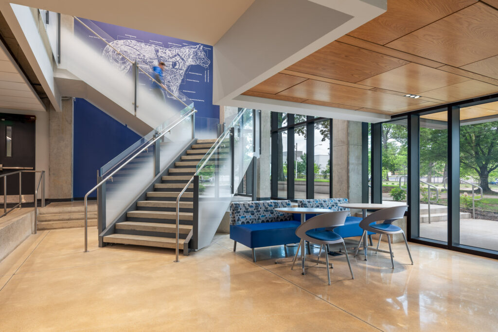 - Research Functionality: Engineering and Arts & Sciences labs are housed on the third floor, with deliberate visual connectivity between levels to showcase the interplay of instruction and discovery.